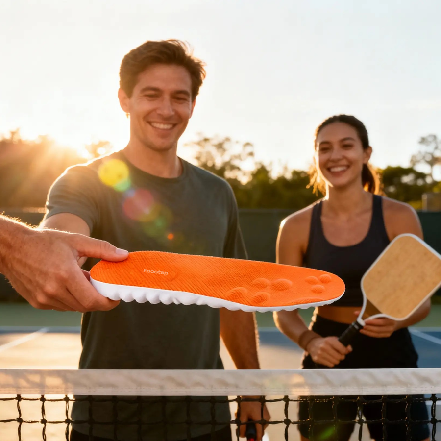 Regular insoles bottom out on every serve and stop. Foostep cushions each impact, keeping your steps light through every match.